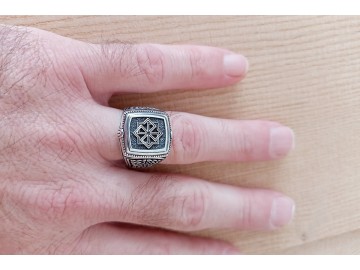 Кольцо с руническим компасом Вегвизир и рунами Тейваз (Тюр) - Путь Воина